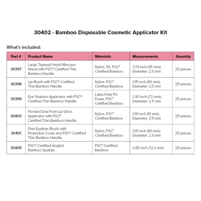 FSC® Certified Thin Bamboo Disposable Cosmetic Applicator Kit