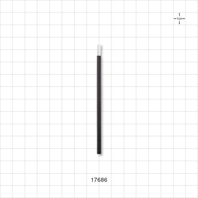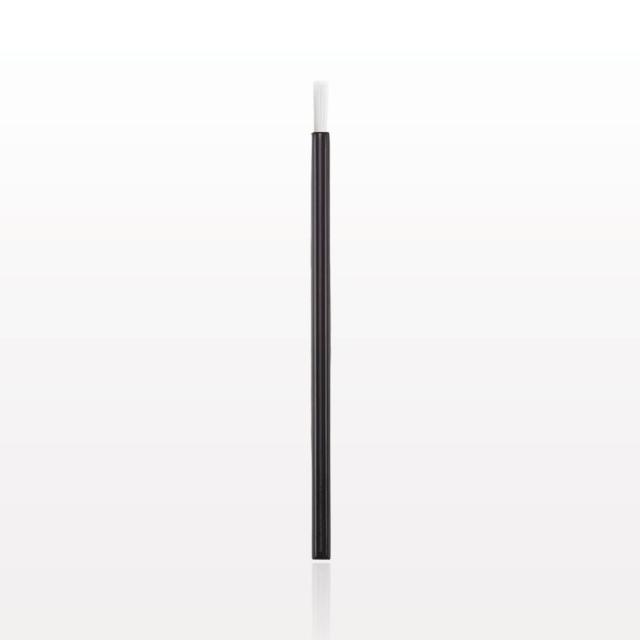 This single-use lip brush applicator with eco-friendly PCR (post-consumer recycled) polystyrene black handle and white nylon tip is perfect for testing lip gloss or lipstick in a retail setting. The bristles are ultra-sonically bonded inside the handle without adhesives to help ensure that the hairs remain in place, preventing shedding during use.