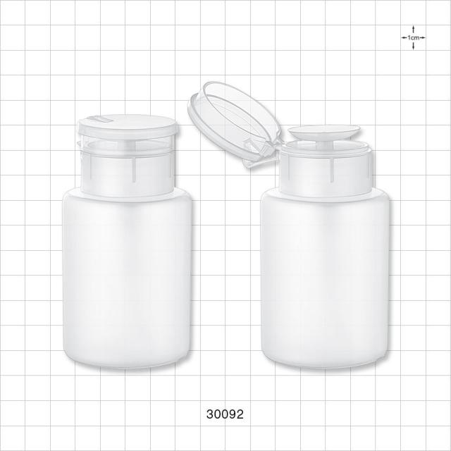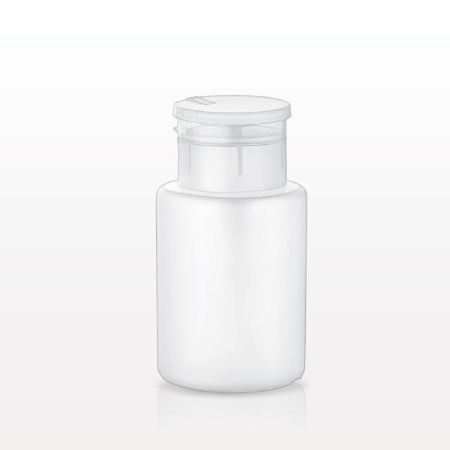 Deliver liquid formulations such as acetone, water, makeup remover or alcohol effortlessly with one touch by using this natural polypropylene 5.4 oz. dispensing bottle with flip top cap. After filled, just flip open the cap, gently push down on the disc dispenser and the solution will rise to the surface instantly. Use a swab, cotton ball, cloth or brush to absorb the liquid from the reservoir and apply to the desired area. The cap creates a tight seal to prevent liquid from spilling.