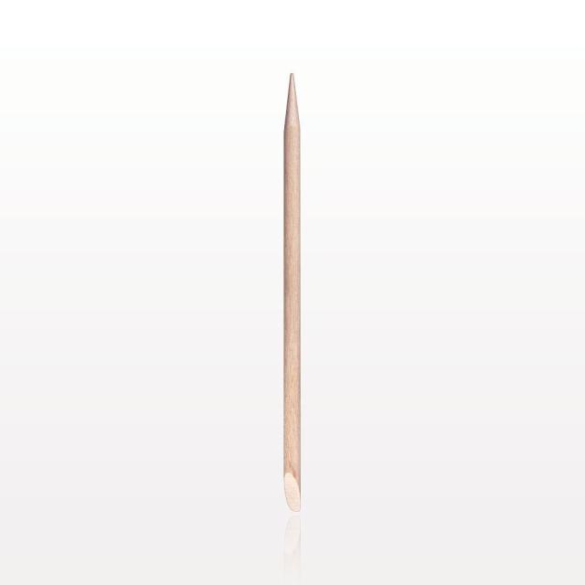 Perform hygienic practices during nail treatments by using this 4 inch birchwood manicure stick with a pointed tip on one end and a bevel tip on the other.