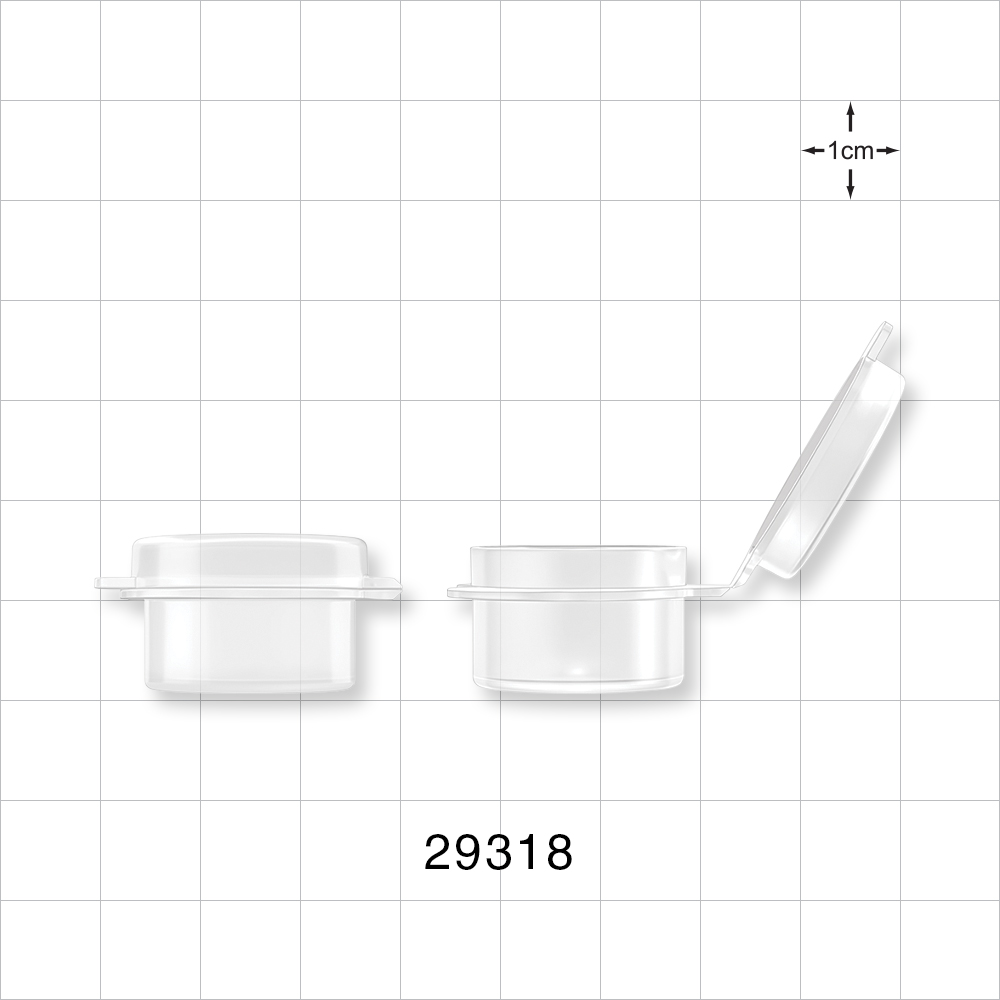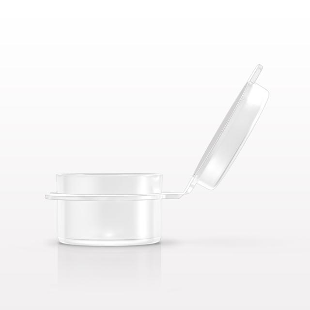 Use this 3 gram natural round hinged jar to provide your customers with convenient take home samples of your cream, lotion, serum or powder based product formulas. The hinged container easily snaps shut to secure the product inside.