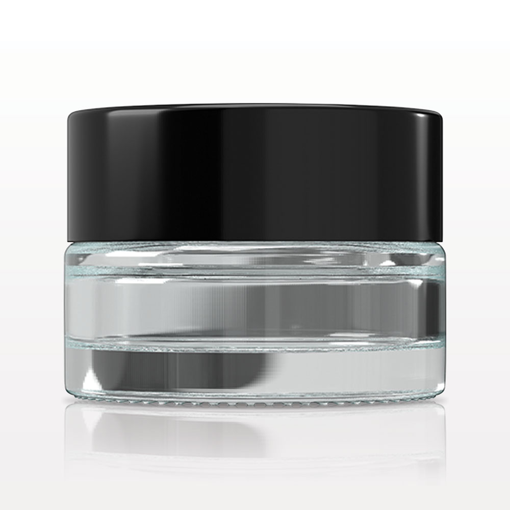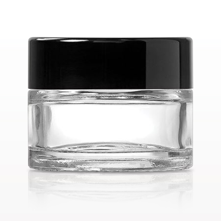 Thick Walled Clear Glass Jar and Smooth Black Cap with White Logo