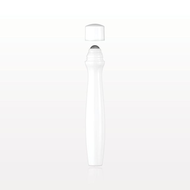 This modern 18 ml PETG and PP bottle with stainless steel roller ball is the perfect vehicle for packaging eye serum, fragrance, or other liquid based formulations.